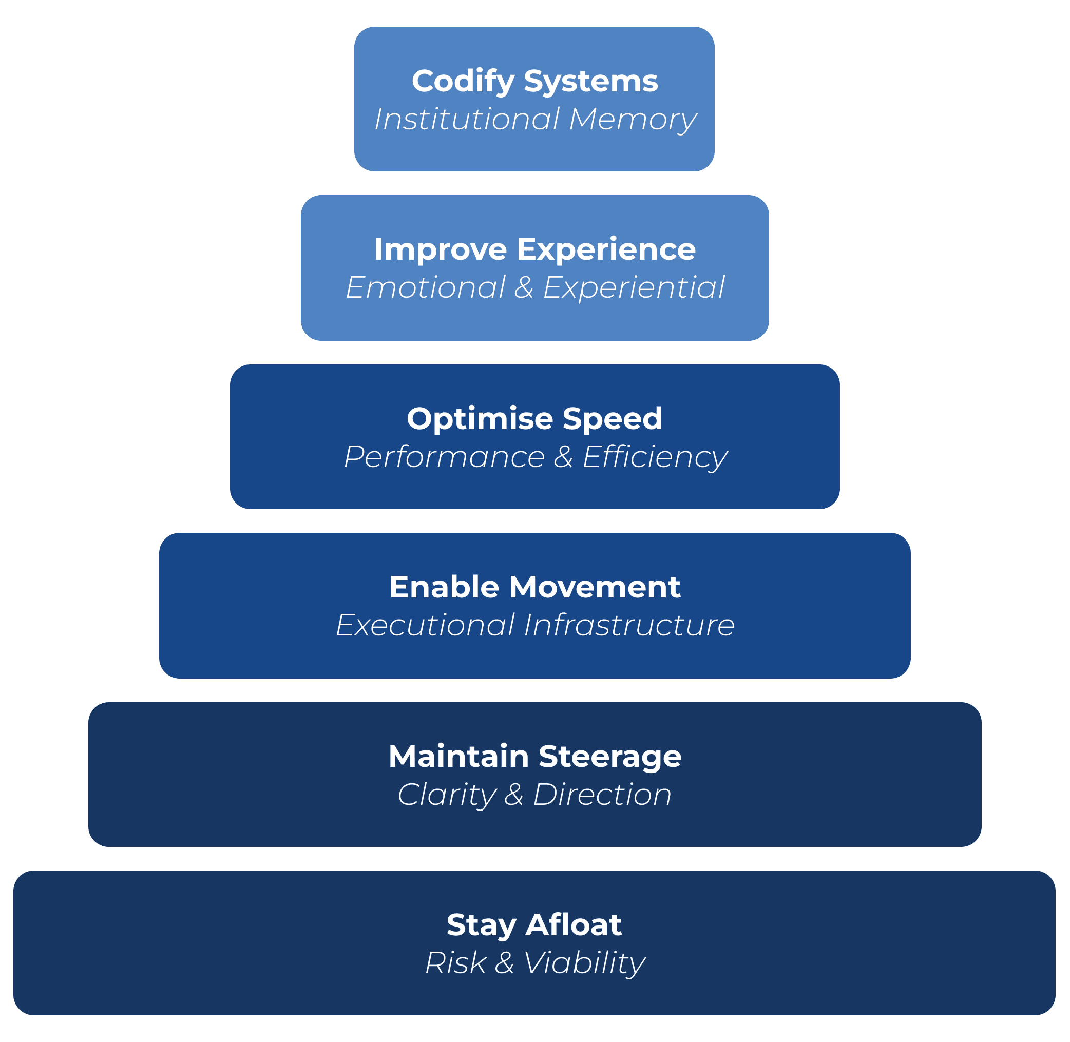 The more visible layers draw attention because they signal progress. But when viability, alignment or execution infrastructure are unstable, refinement amplifies fragility rather than strength.